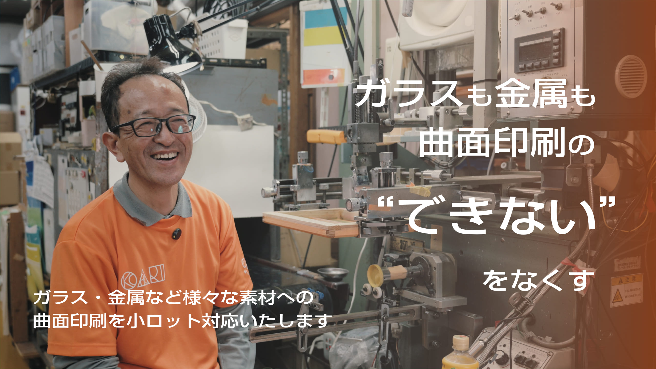 現代シルクスクリーン技術を米国から日本へいち早く導入したパイオニアとして、常に技術革新に挑む――その姿勢は今も変わりません。 特に、難易度が高いとされる「曲面への印刷」においては、全国でも有数の技術力を誇ります。